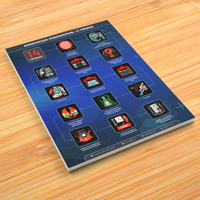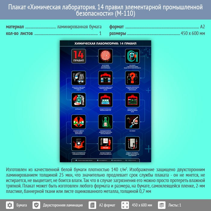 Плакат «Химическая лаборатория. 14 правил элементарной промышленной безопасности» (М-110, ламинированная бумага, А2, 1 лист) в Великом Новгороде купить