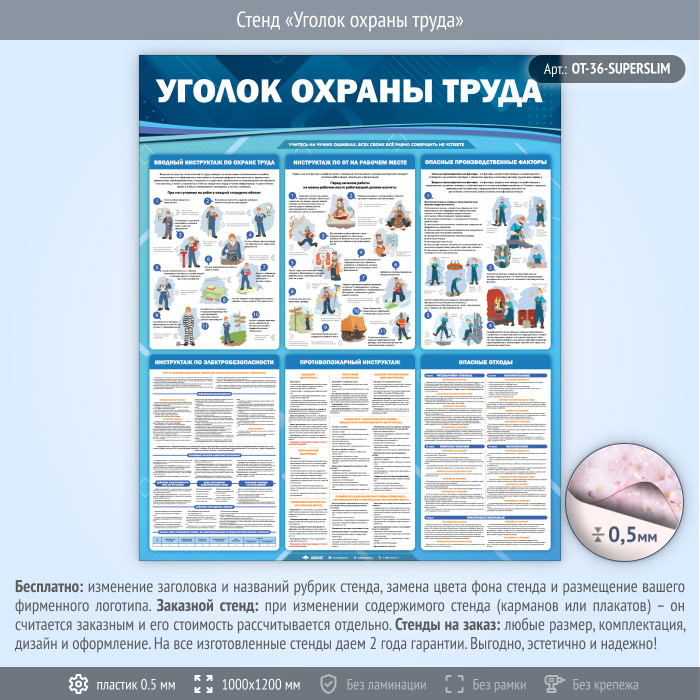 Стенд «Уголок охраны труда» (OT-36-SUPERSLIM) в Великом Новгороде купить
