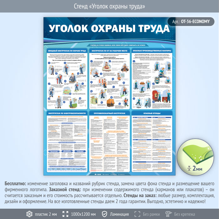 Стенд «Уголок охраны труда» (OT-36-ECONOMY) в Великом Новгороде купить
