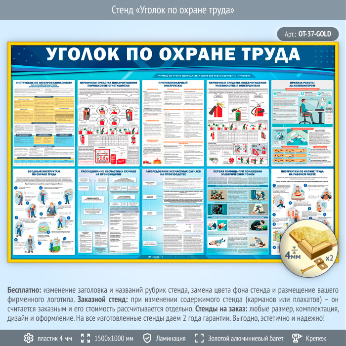 Стенд «Уголок по охране труда» (OT-37-GOLD) в Великом Новгороде купить