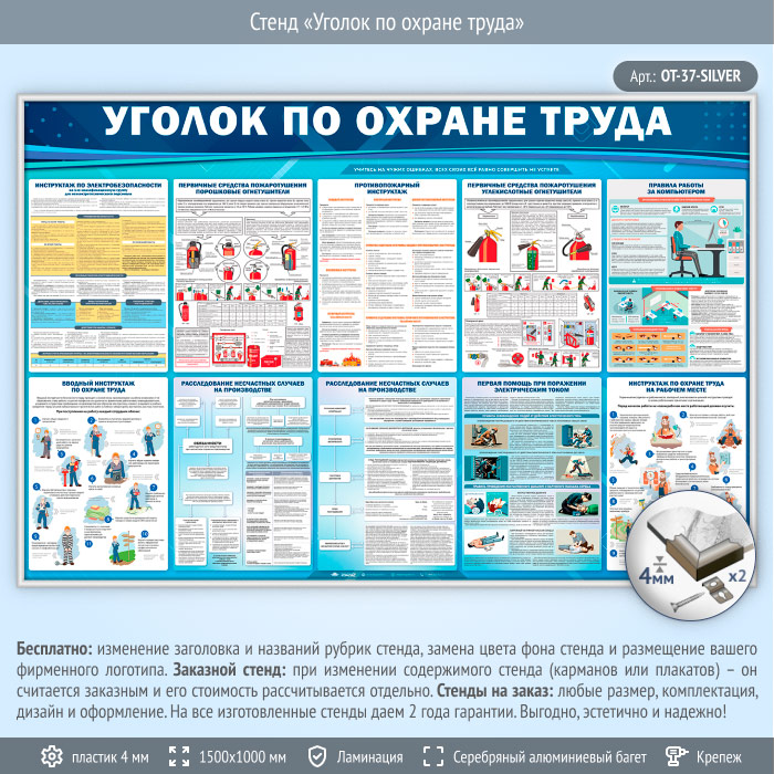 Стенд «Уголок по охране труда» (OT-37-SILVER) в Великом Новгороде купить