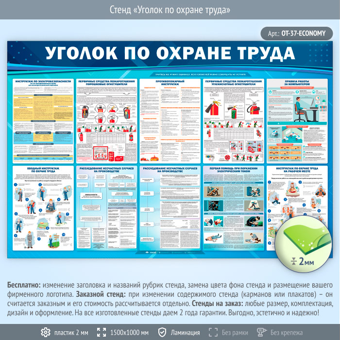 Стенд «Уголок по охране труда» (OT-37-ECONOMY) в Великом Новгороде купить