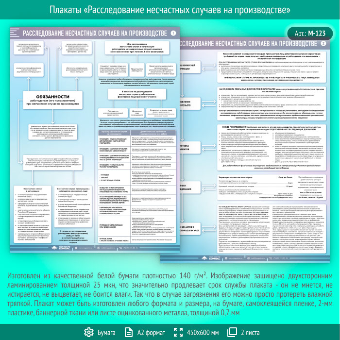 Плакаты «Расследование несчастных случаев на производстве» (М-123, ламинированная бумага, А2, 2 листа) в Великом Новгороде купить