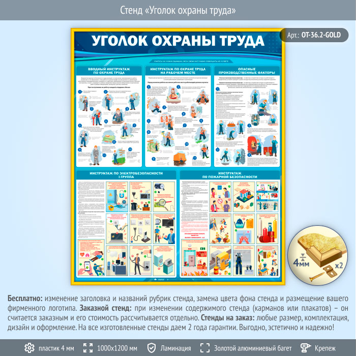 Стенд «Уголок охраны труда» (OT-36.2-GOLD) в Великом Новгороде купить