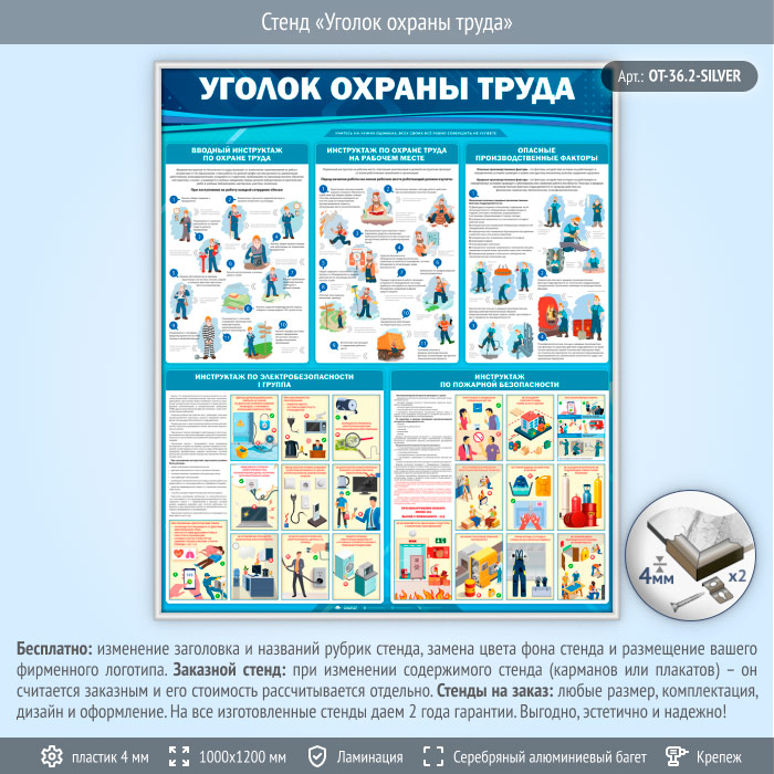 Стенд «Уголок охраны труда» (OT-36.2-SILVER) в Великом Новгороде купить