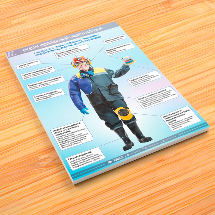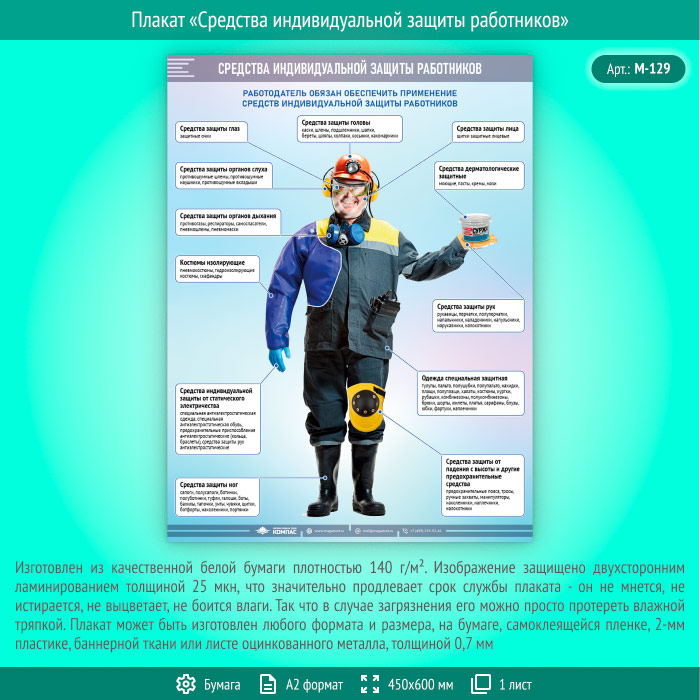 Плакат «Средства индивидуальной защиты работников» (М-129, ламинированная бумага, А2, 1 лист) в Великом Новгороде купить