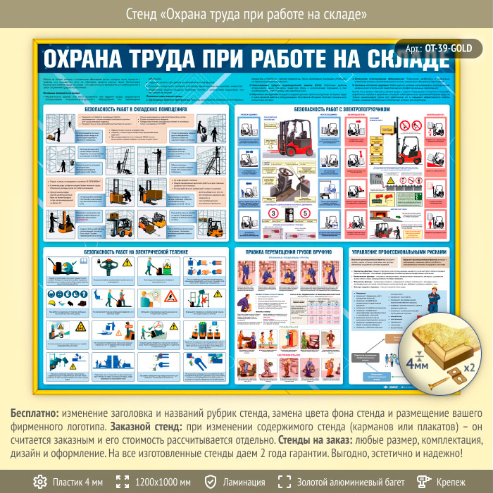Стенд «Охрана труда при работе на складе» (OT-39-GOLD) в Великом Новгороде купить