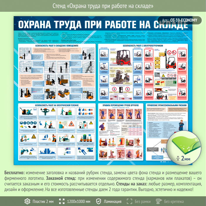 Стенд «Охрана труда при работе на складе» (OT-39-ECONOMY) в Великом Новгороде купить