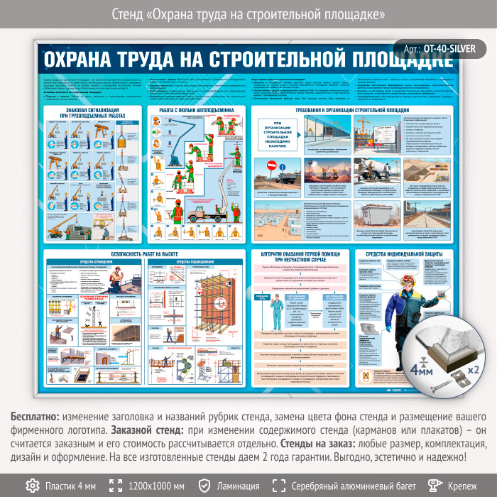 Стенд «Охрана труда на строительной площадке» (OT-40-SILVER) в Великом Новгороде купить