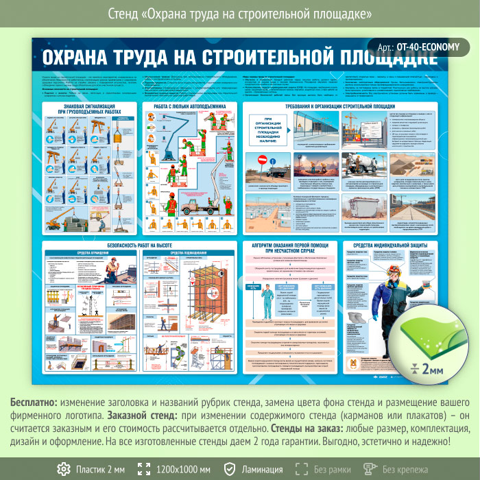 Стенд «Охрана труда на строительной площадке» (OT-40-ECONOMY) в Великом Новгороде купить