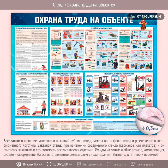 Стенд «Охрана труда на объекте» (OT-43-SUPERSLIM) в Великом Новгороде купить