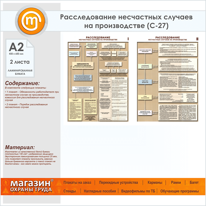 Плакаты «Расследование несчастных случаев на производстве» (С-27, ламинированная бумага, А2, 2 листа) в Великом Новгороде купить
