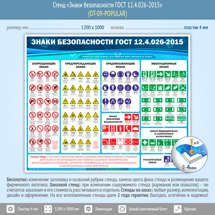 Стенд «Знаки безопасности ГОСТ 12.4.026-2015» (OT-09-POPULAR) в Великом Новгороде купить