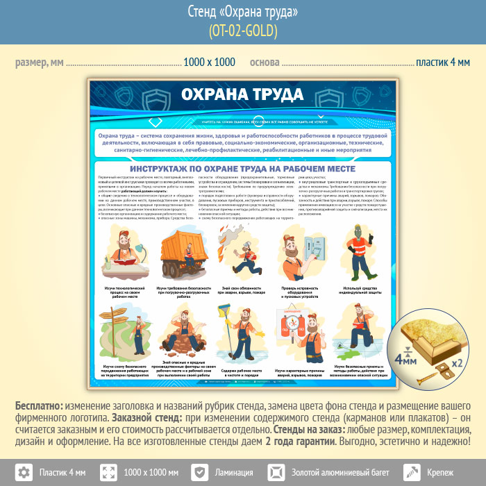 Стенд «Охрана труда» (OT-02-GOLD) в Великом Новгороде купить