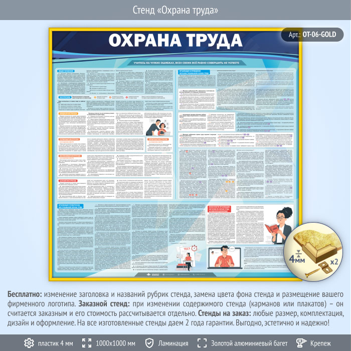 Стенд «Охрана труда» (OT-06-GOLD) в Великом Новгороде купить