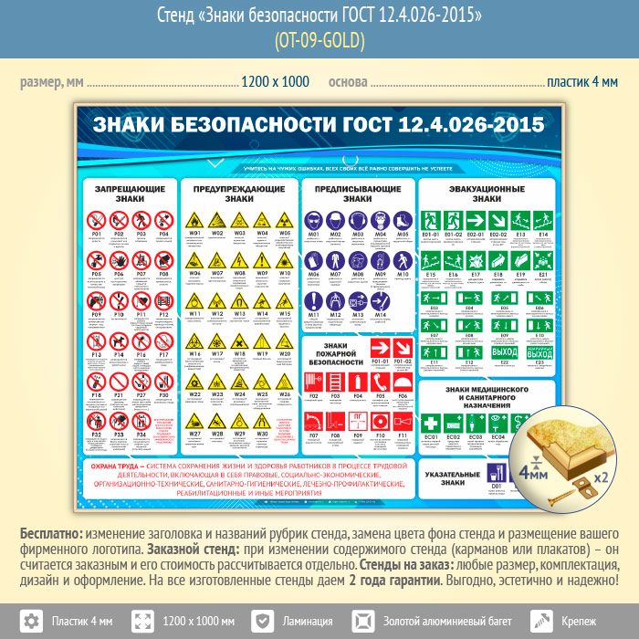 Стенд «Знаки безопасности ГОСТ 12.4.026-2015» (OT-09-GOLD) в Великом Новгороде купить