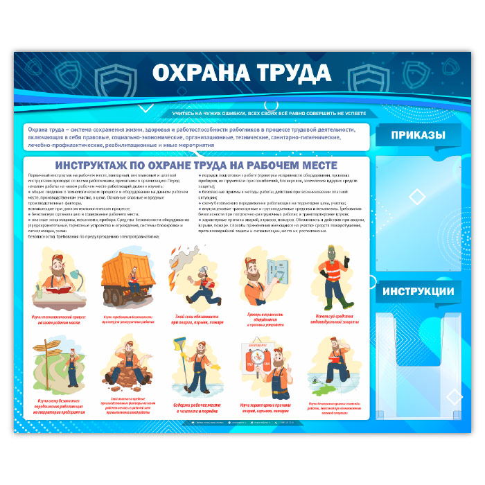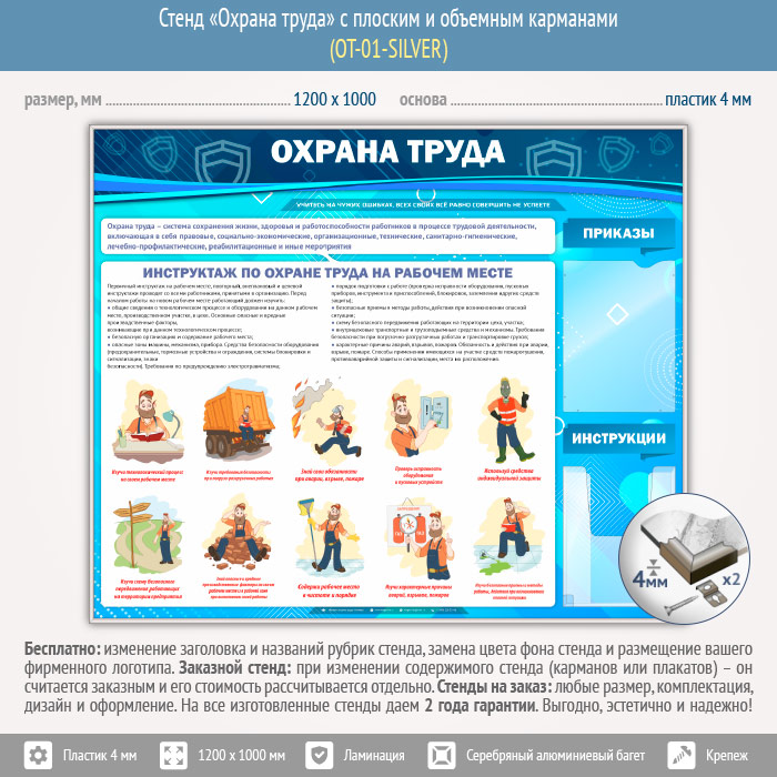 Стенд «Охрана труда» с плоским и объемным карманами (OT-01-SILVER) в Великом Новгороде купить