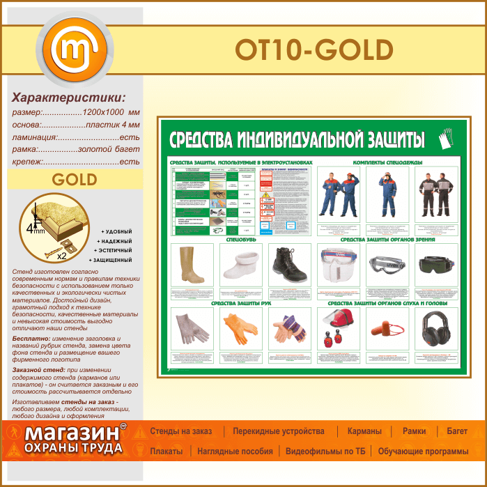 Стенд «Средства индивидуальной защиты» (OT-10-GOLD) в Великом Новгороде купить