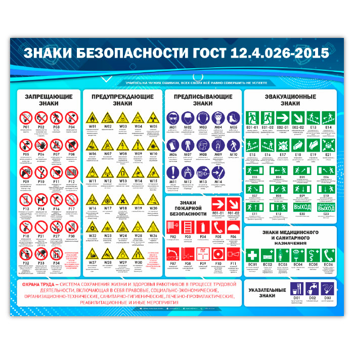 Стенд «Знаки безопасности ГОСТ 12.4.026-2015» (OT-09-ECONOMY) в Великом Новгороде купить