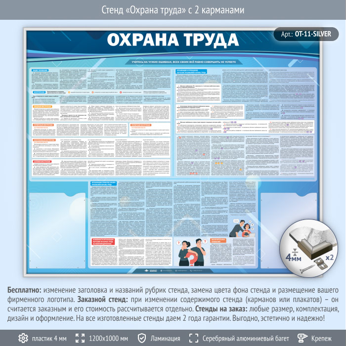 Стенд «Охрана труда» с 2 карманами (OT-11-SILVER) в Великом Новгороде купить
