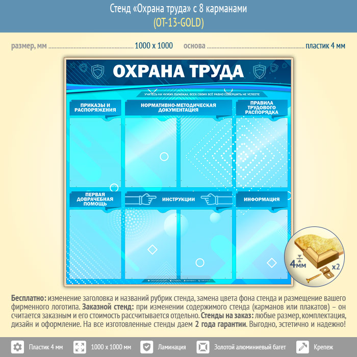 Стенд «Охрана труда» с 8 карманами (OT-13-GOLD) в Великом Новгороде купить