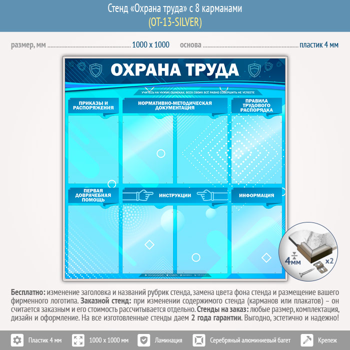 Стенд «Охрана труда» с 8 карманами (OT-13-SILVER) в Великом Новгороде купить
