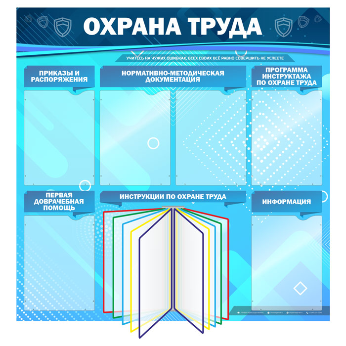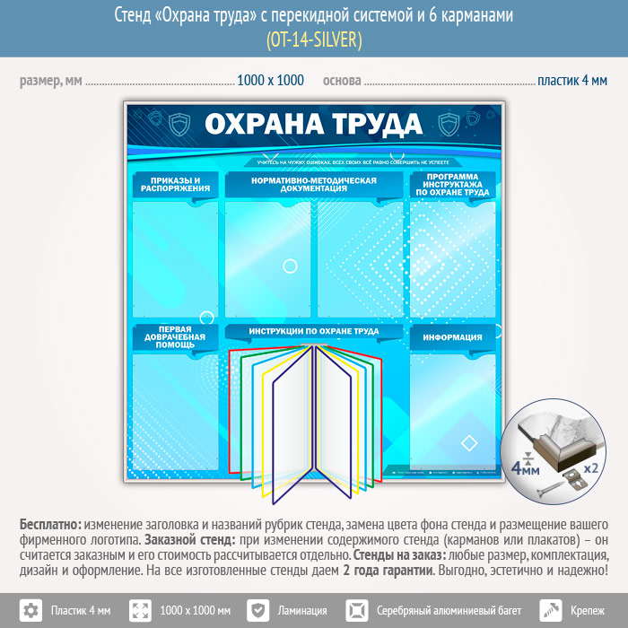 Стенд «Охрана труда» с перекидной системой и 6 карманами (OT-14-SILVER) в Великом Новгороде купить