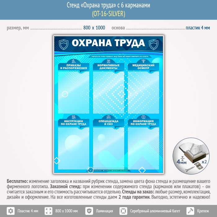 Стенд «Охрана труда» с 6 карманами (OT-16-SILVER) в Великом Новгороде купить