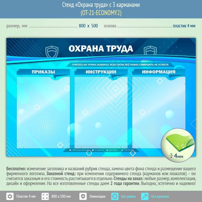 Стенд «Охрана труда» с 3 карманами (OT-21-ECONOMY2) в Великом Новгороде купить