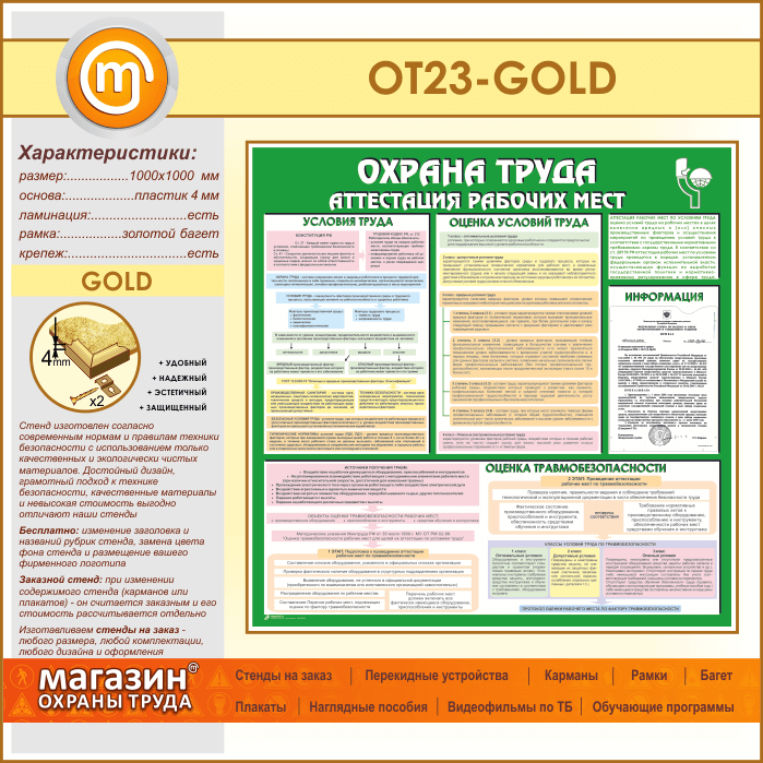 Стенд «Охрана труда. Аттестация рабочих мест» с карманом (OT-23-GOLD) в Великом Новгороде купить