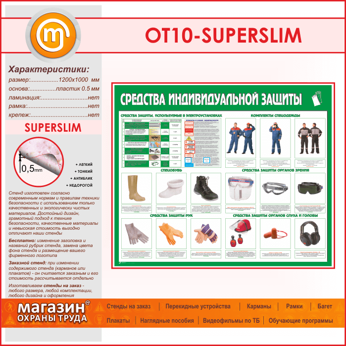 Стенд «Средства индивидуальной защиты» (OT-10-SUPERSLIM) в Великом Новгороде купить