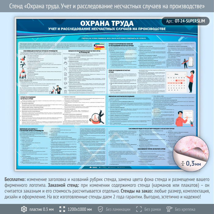 Стенд «Охрана труда. Учет и расследование несчастных случаев на производстве» (OT-24-SUPERSLIM) в Великом Новгороде купить