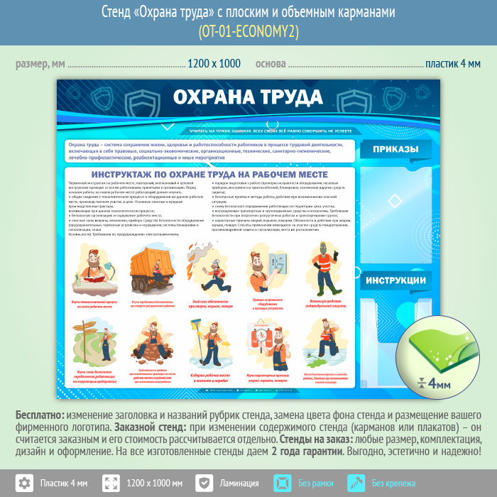 Стенд «Охрана труда» с плоским и объемным карманами (OT-01-ECONOMY2) в Великом Новгороде купить