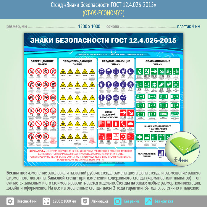 Стенд «Знаки безопасности ГОСТ 12.4.026-2015» (OT-09-ECONOMY2) в Великом Новгороде купить