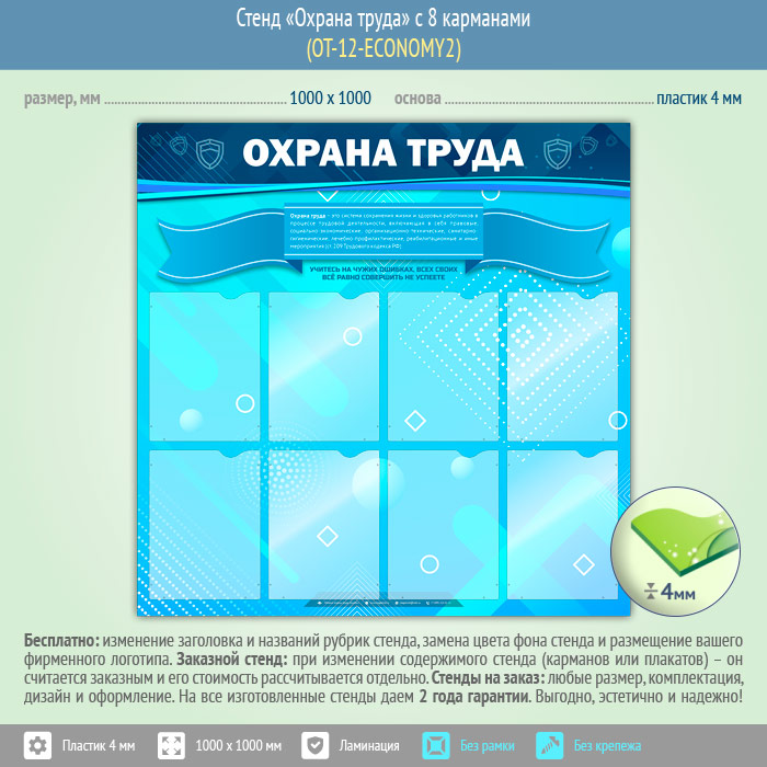 Стенд «Охрана труда» с 8 карманами (OT-12-ECONOMY2) в Великом Новгороде купить