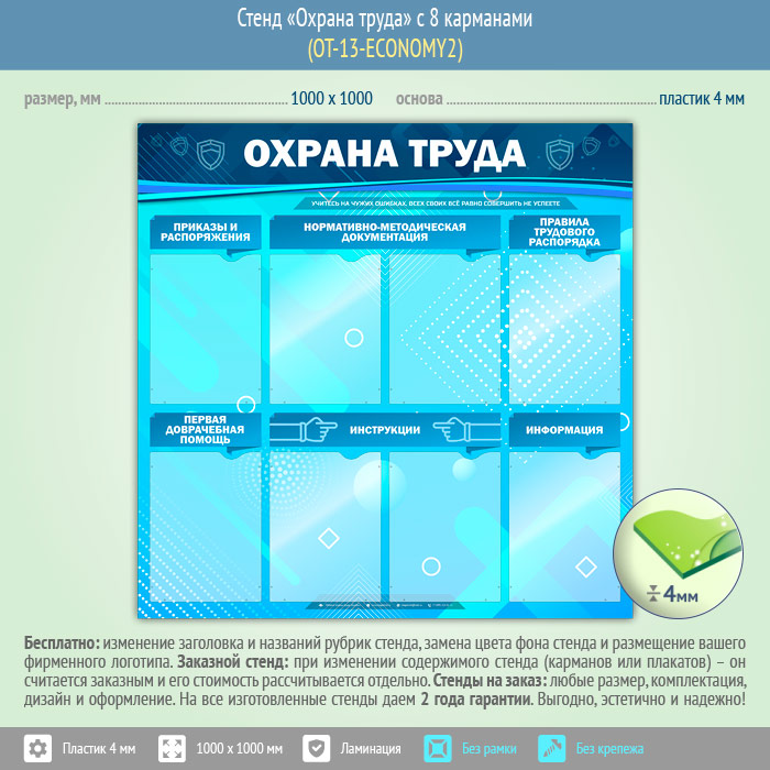 Стенд «Охрана труда» с 8 карманами (OT-13-ECONOMY2) в Великом Новгороде купить