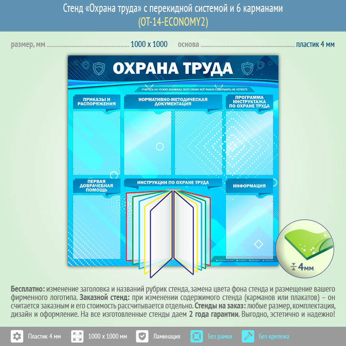 Стенд «Охрана труда» с перекидной системой и 6 карманами (OT-14-ECONOMY2) в Великом Новгороде купить