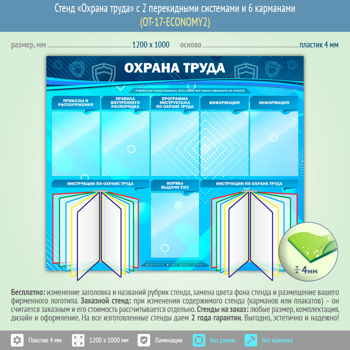 Стенд «Охрана труда» с 2 перекидными системами и 6 карманами (OT-17-ECONOMY2) в Великом Новгороде купить