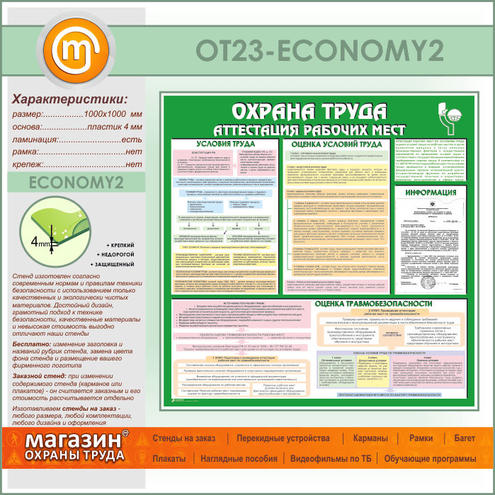 Стенд «Охрана труда. Аттестация рабочих мест» с карманом (OT-23-ECONOMY2) в Великом Новгороде купить
