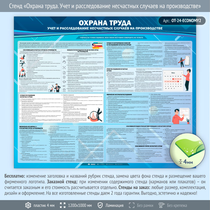 Стенд «Охрана труда. Учет и расследование несчастных случаев на производстве» (OT-24-ECONOMY2) в Великом Новгороде купить