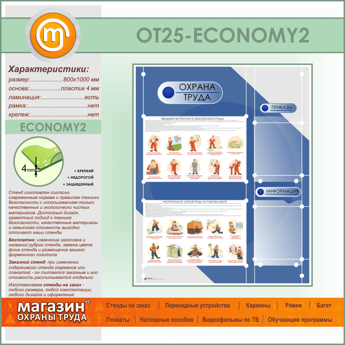 Стенд «Охрана труда» с 2 плоскими карманами (OT-25-ECONOMY2) в Великом Новгороде купить