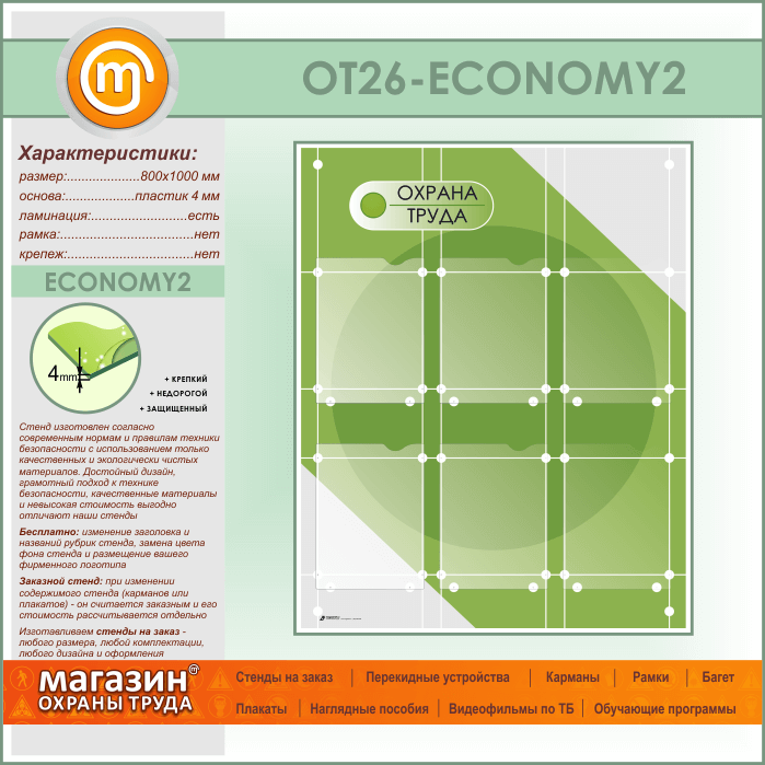 Стенд «Охрана труда» с 6 плоскими карманами (OT-26-ECONOMY2) в Великом Новгороде купить