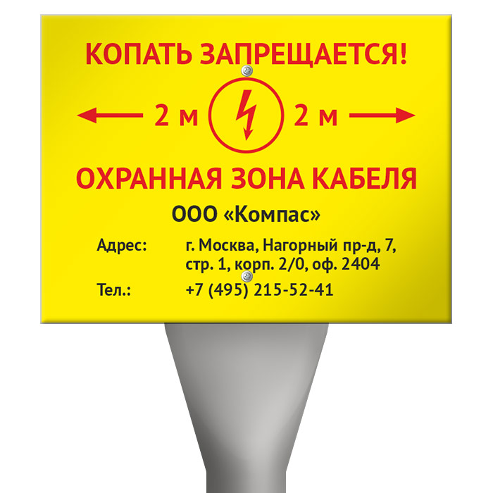 Столбик кабельный СКТ-1,6 с металлическим знаком OZK-05 «Копать запрещается» в Великом Новгороде купить