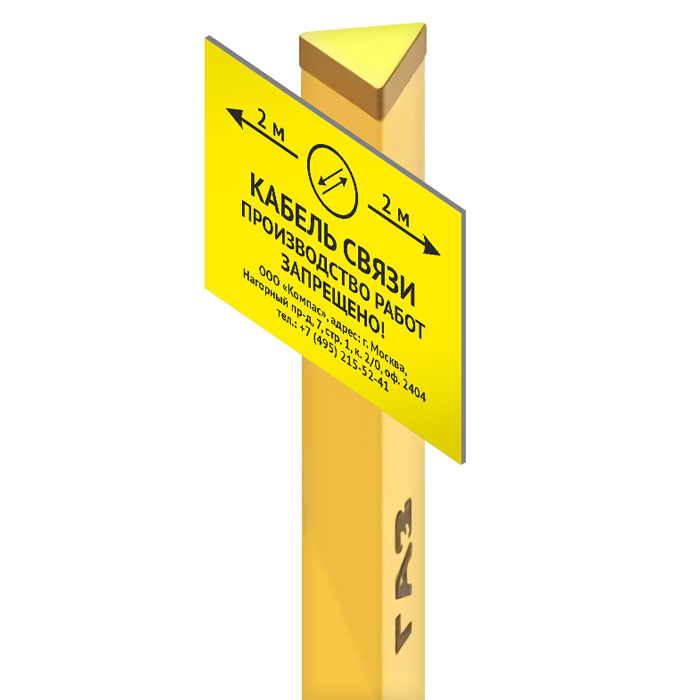 Столбик треугольный желтый h=1800 мм (сторона 130 мм) в Великом Новгороде купить