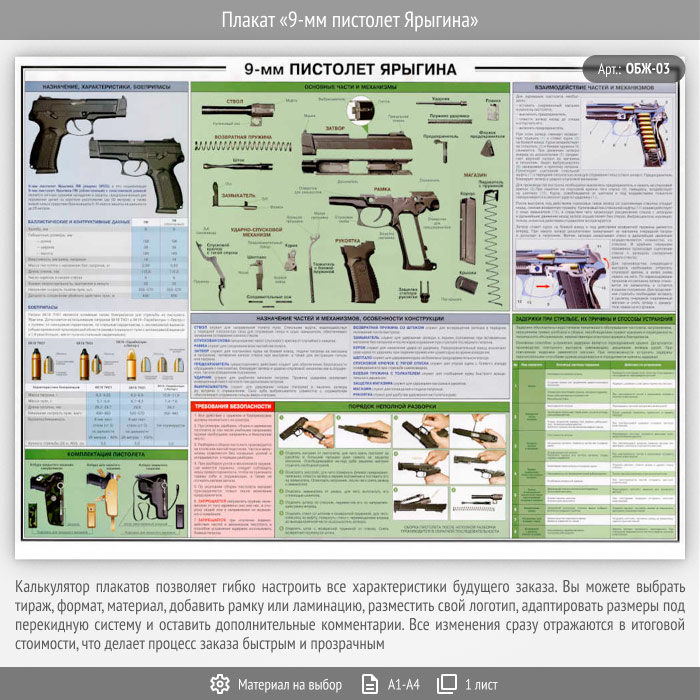 Плакат «9-мм пистолет Ярыгина» (ОБЖ-03, 1 лист) в Великом Новгороде купить
