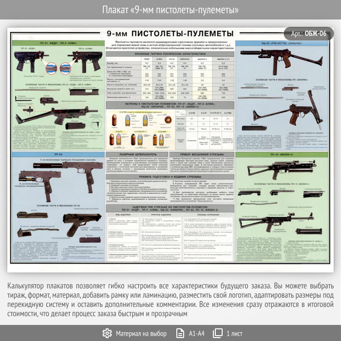 Плакат «9-мм пистолеты-пулеметы» (ОБЖ-06, 1 лист) в Великом Новгороде купить