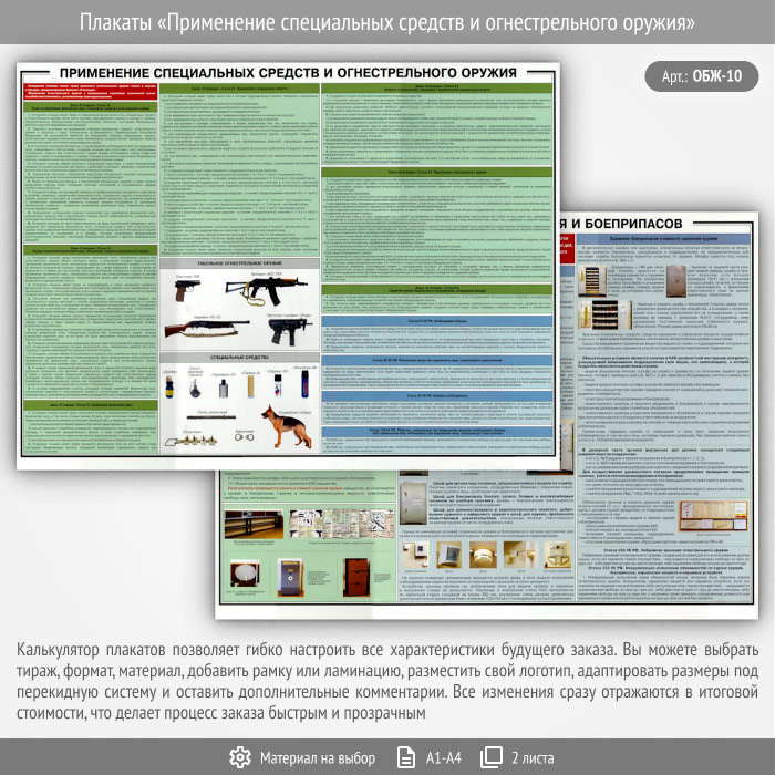 Плакаты «Применение специальных средств и огнестрельного оружия» (ОБЖ-10, 2 листа) в Великом Новгороде купить