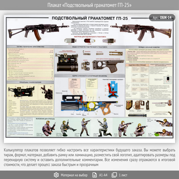 Плакат «Подствольный гранатомет ГП-25» (ОБЖ-14, 1 лист) в Великом Новгороде купить