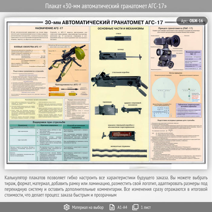 Плакат «30-мм автоматический гранатомет АГС-17» (ОБЖ-16, 1 лист) в Великом Новгороде купить