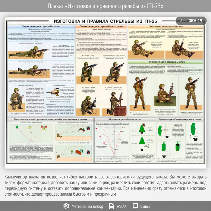 Плакат «Изготовка и правила стрельбы из ГП-25» (ОБЖ-19, 1 лист) в Великом Новгороде купить